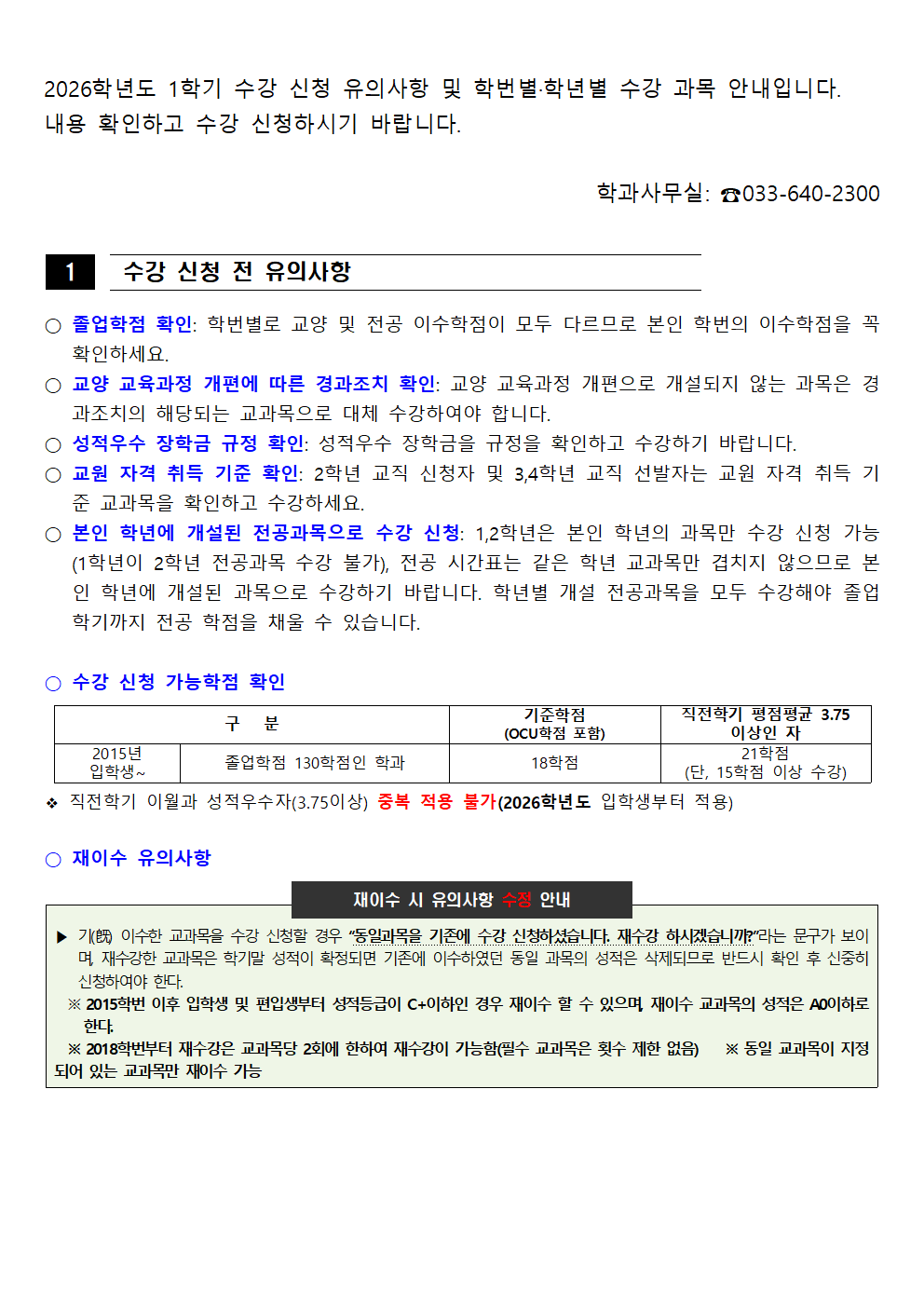 [학부] 2026학년도 1학기 학년별 수강학신청 안내