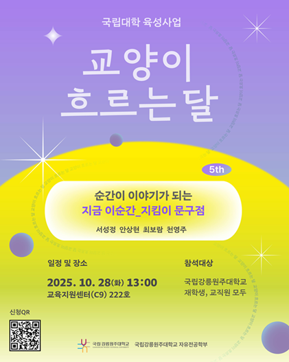 • 참석대상 : 국립강릉원주대학교 재학생 및 교직원