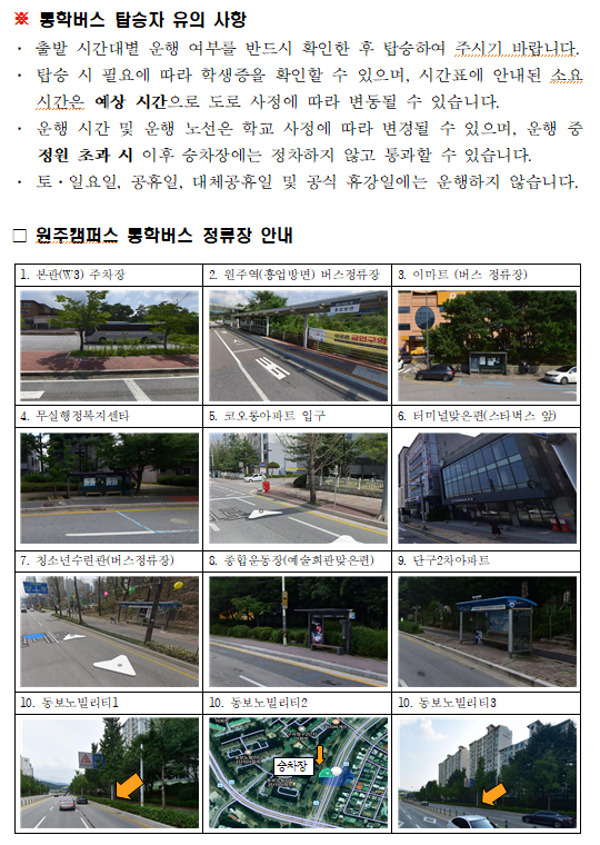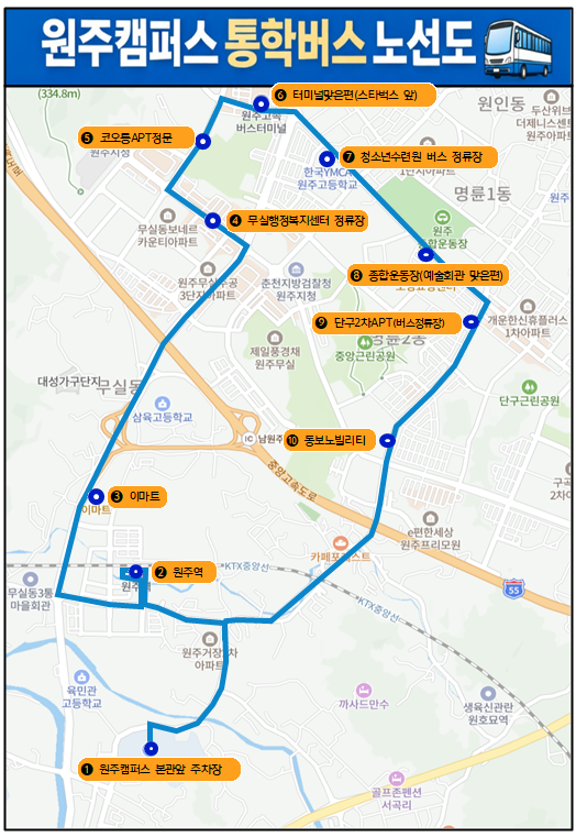2026학년도 강원대학교 원주캠퍼스 시내 통학버스 운행 알림