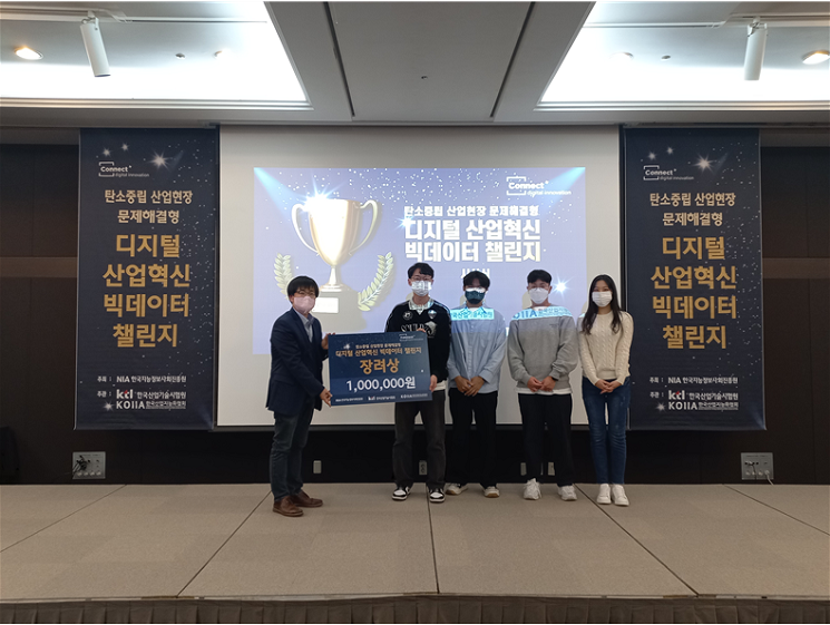 산업경영공학과(정제훈, 명재홍, 김광호, 이예승 학생), 탄소중립 산업현장 문제해결형 디지털 산업혁신 빅데이터 플랫폼 데이터 챌린지 최종평가 장려상 수상