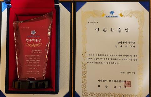 강릉원주대학교 기계공학과 김대식 교수가 2025년 11월 5일부터 8일까지 오션스위츠 제주호텔에서 열린 한국분무공학회 창립 30주년 기념 학술대회에서 ‘연송학술상’을 수상했다.