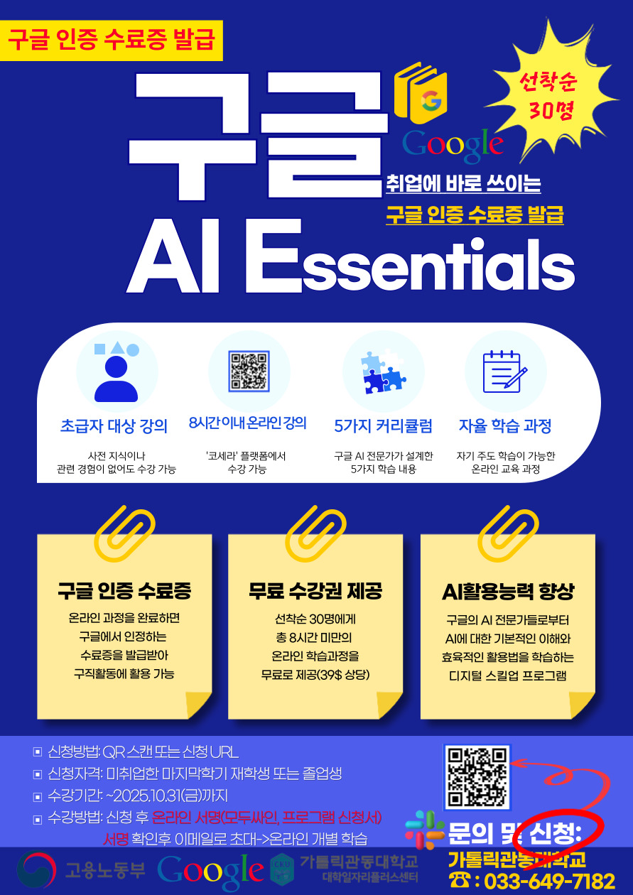 ◈ 관련 문의: 가톨릭관동대학교 대학일자리플러스센터 김정화 취업지원관(033-679-7182)